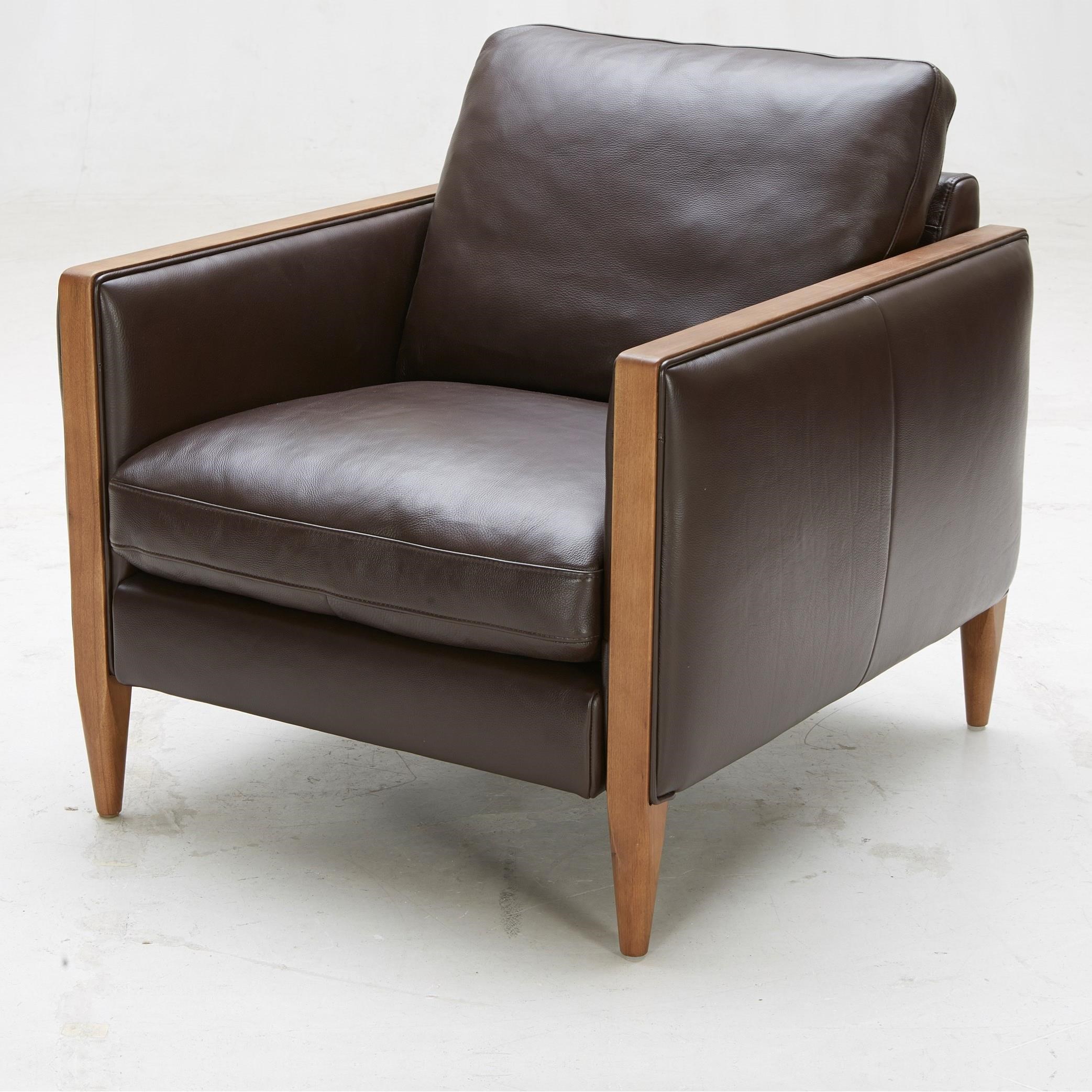 Kuka Home Murphy Mid Century Modern Leather Chair With Exposed Wood Arms Howell Furniture Upholstered Chairs