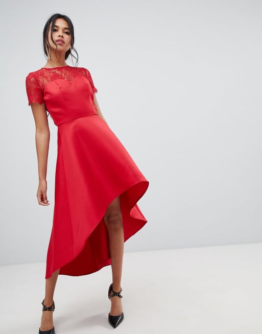 Chi Chi London Oti Lace Back High Low Midi Dress Red Very Co Uk
