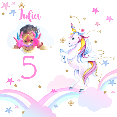 Unicorn verjaardag uitnodiging sjabloon met foto | Gratis Vector