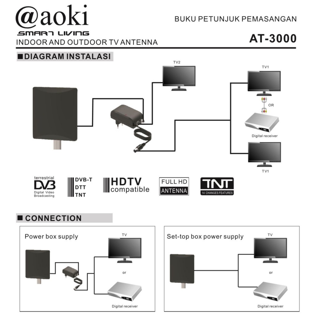 AOKI Antena 2 tv digital luar dalam indoor outdoor AT3000 | Shopee Indonesia